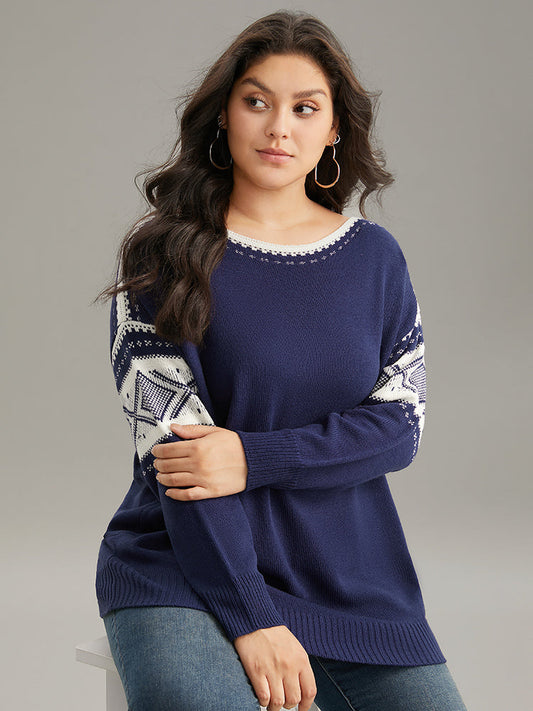 Bandana Print Boat Neck Drop Shoulder Pullover