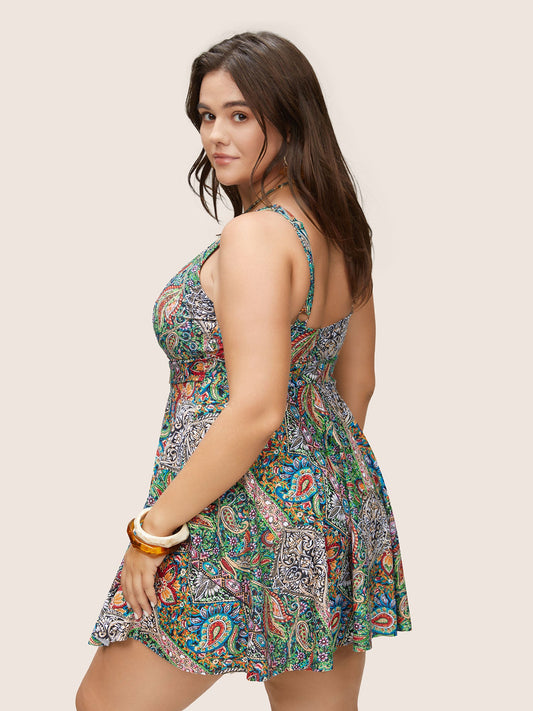 Bandana Print Buckle Detail Gathered Swim Dress