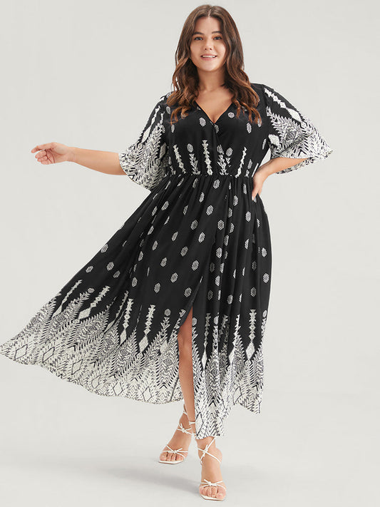 Bandana Print Button Pocket Split Flutter Wrap Maxi Dress