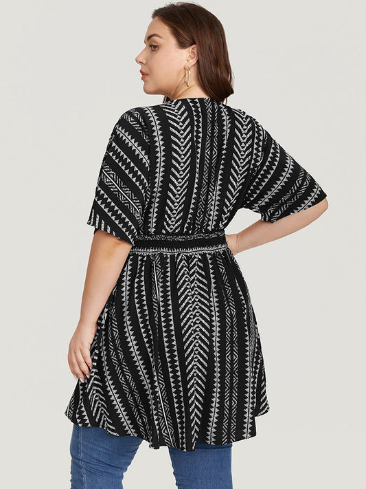 Bandana Print Knot Neck Frill Trim Bell Sleeve Dress