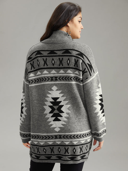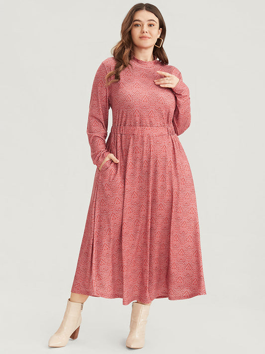 Bandana Print Mock Neck Pocket Ruffle Hem Dress