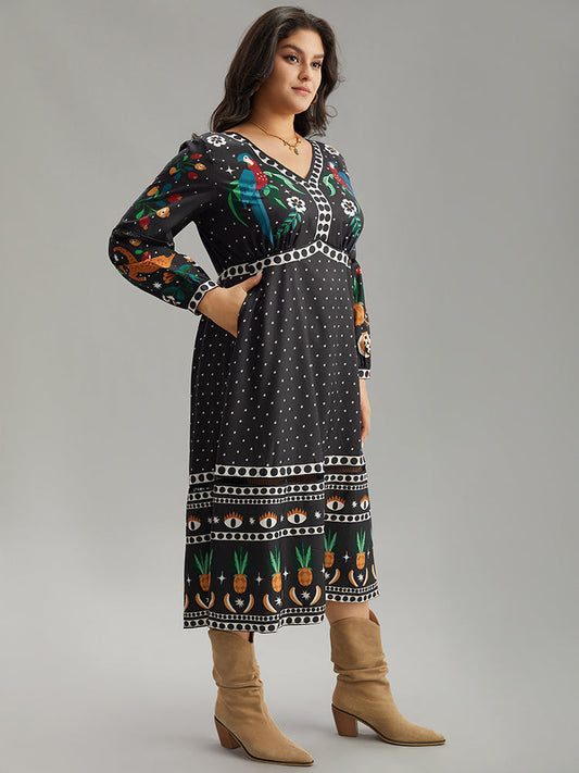 Bandana Print Lantern Sleeve Ruffle Hem Dress