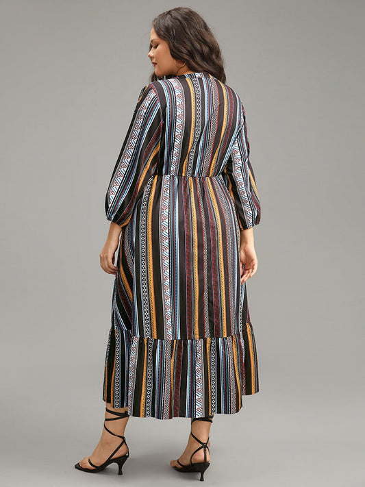 Bandana Print Notched Layered Hem Elastic Cuffs Dress