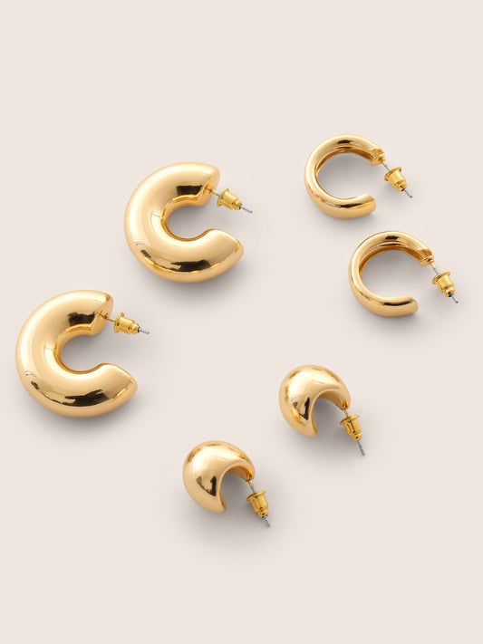 3 Pairs Gold Minimalist Versatile Hoop Earrings