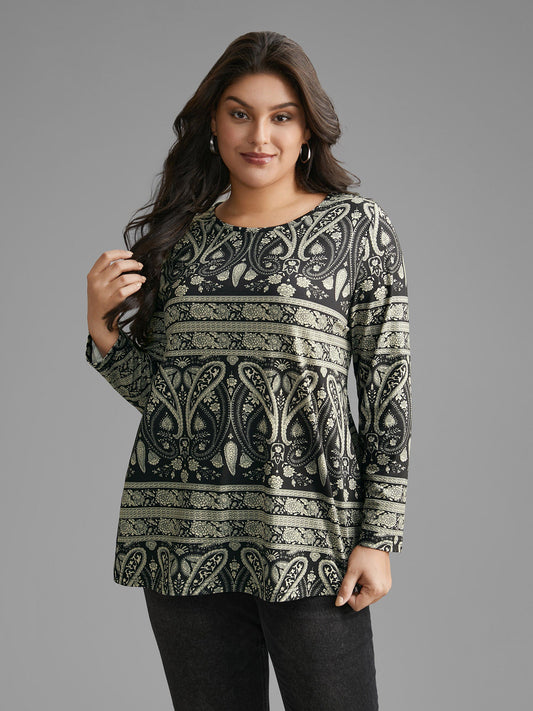 Bandana Print Raglan Sleeve Crew Neck Sweatshirt