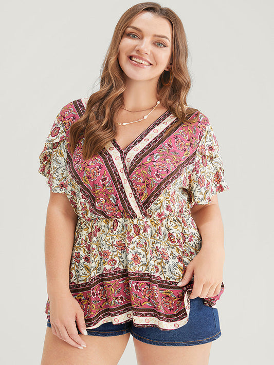Bandana Print Ruffle Sleeve Wrap Blouse