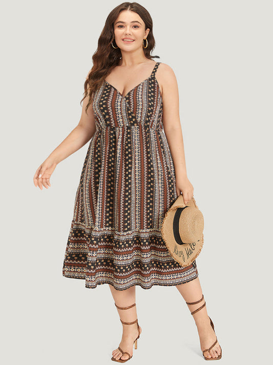 Bandana Print Ruffle Hem Wrap Pocket Cami Dress