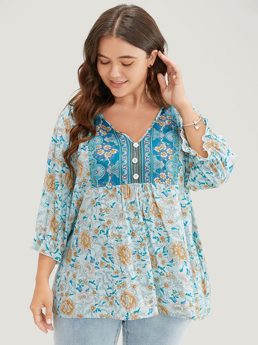Bandana Print Ruffles Pocket Batwing Sleeve Dress
