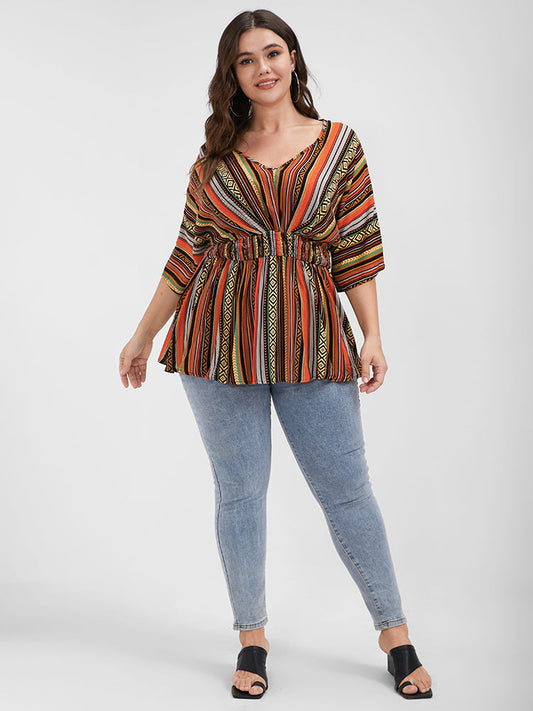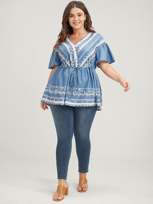 Bandana Ruffles Elastic Waist Wrap Blouse