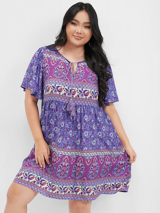 Bandana Ruffles Keyhole Ties Neck Short Dress