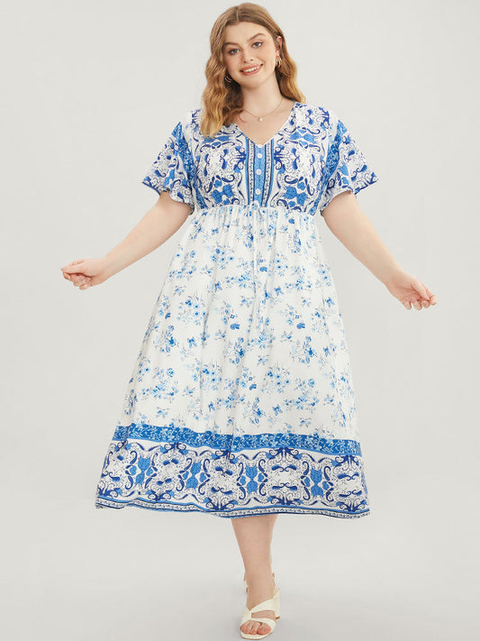 Bandana Ruffle Sleeve Button Detail Pocket Ties Up Dress