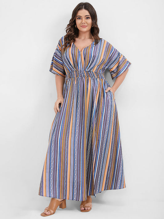 Bandana Split Dolman Sleeve Pocket Maxi Dress