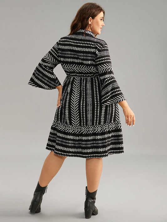 Bandana Striped Bell Sleeve Shirt Collar Dress