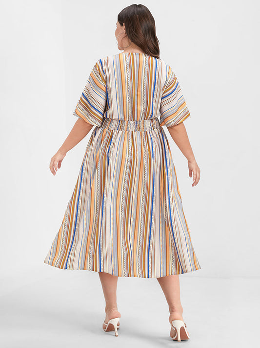 Bandana Striped Curved Hem Ruffle Sleeve Dress