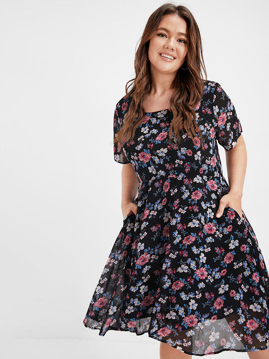 Bloom Dress - Scoop Neck Pocket Floral Short Dress