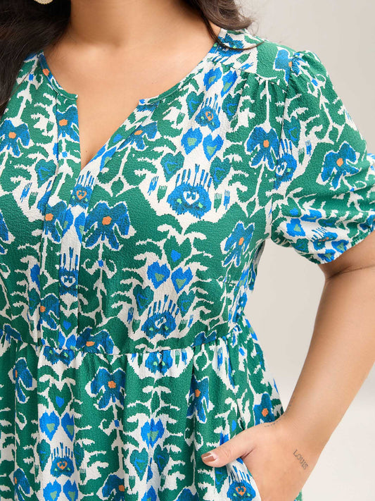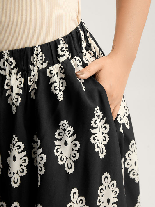 Boho Pattern Stretchy Waist Pockets Midi Dress