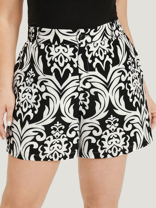 Boho Print Chiffon Belted Patchwork Hanky Hem Blouse