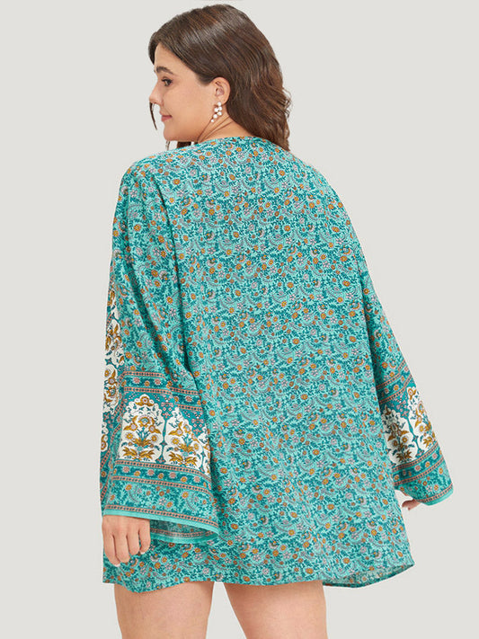 Boho Print Flutter Sleeve Open Front Kimono