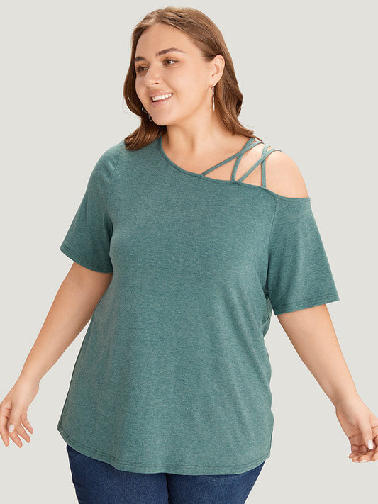 plain Heather One shoulder Crisscross T-shirt