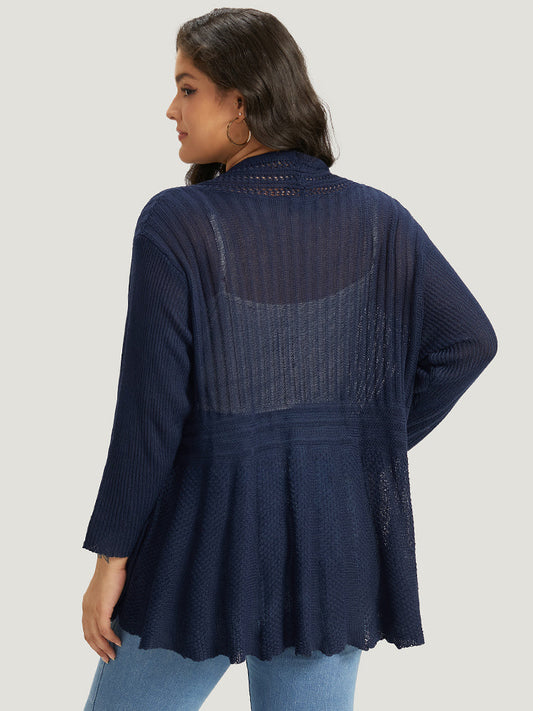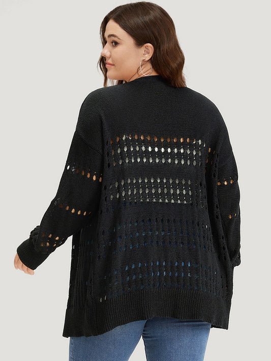 Plain Hollow Out Drop Shoulder Open Front Cardigan