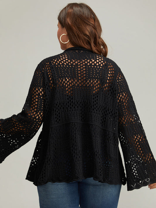 Plain Hollow Out Button Through Bell Sleeve Cardigan