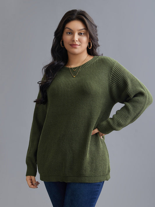 Plain Hollow Out Drop Shoulder Cable Knit Cardigan