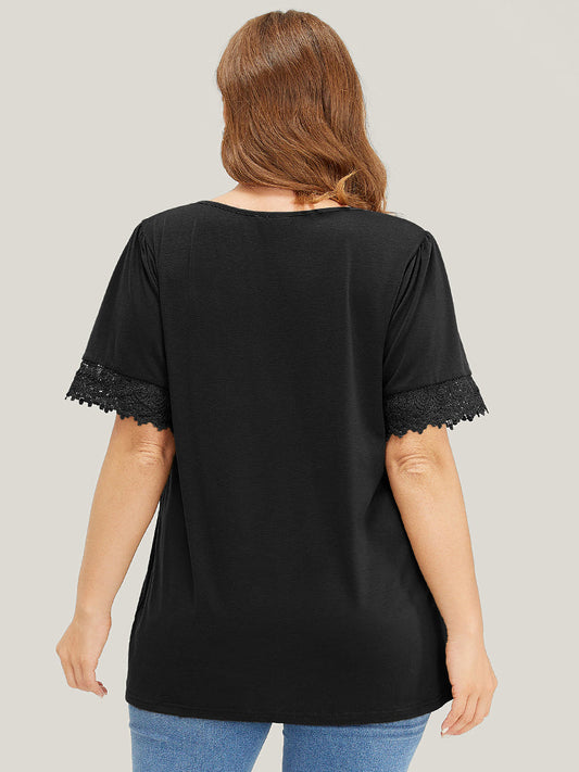 Plain Lace Raglan Sleeve Heather Crisscross Neck T-shirt