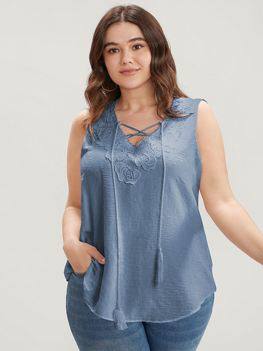 Plain Lace Up Flutter Gathered Bell Sleeve Blouse