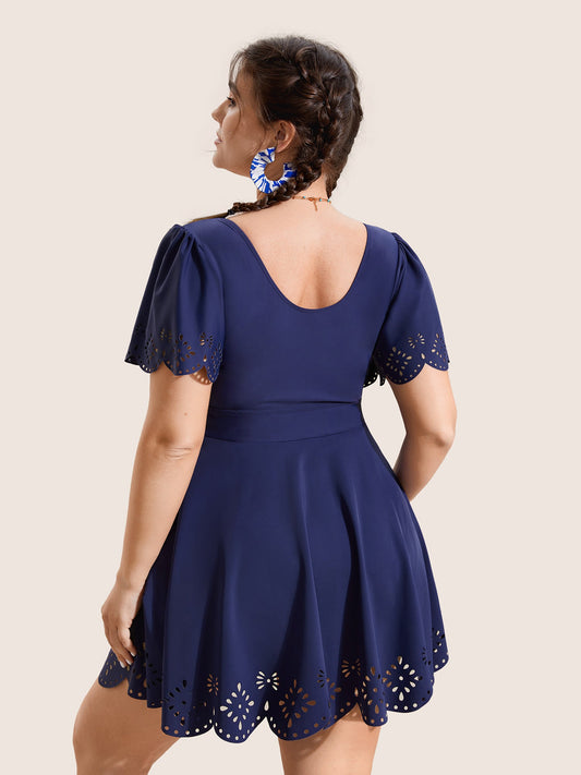 Plain Laser Cut Flutter Trim One Piece Swimsuit