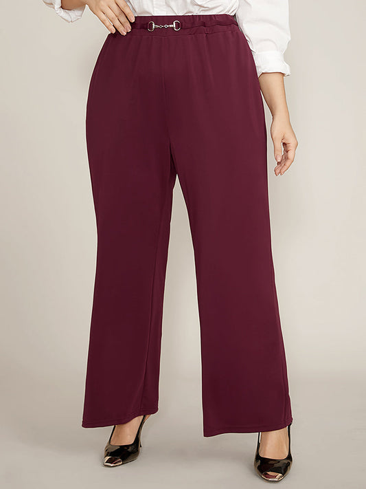 Plain Metal Detail Pocket Elastic Waist Wide Leg Pants