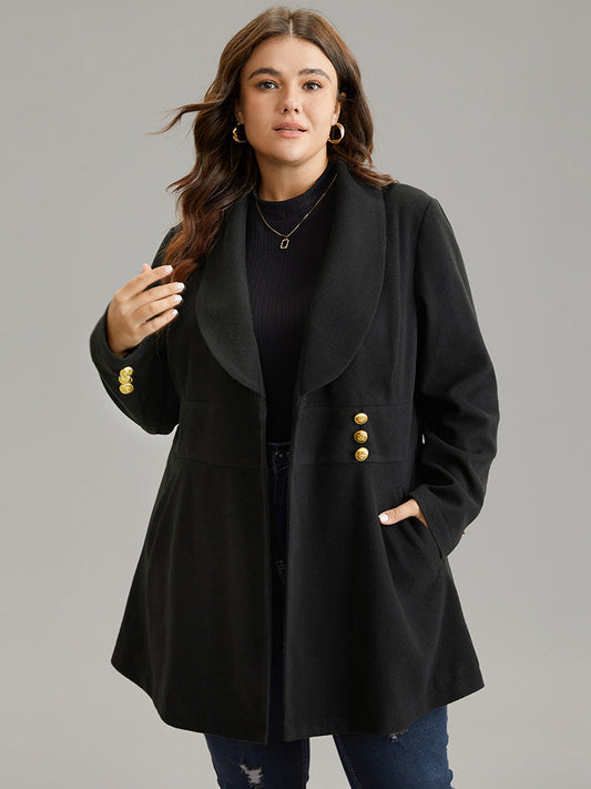 Plain Metal Button Detail Asymmetrical Hem Pleated Jacket