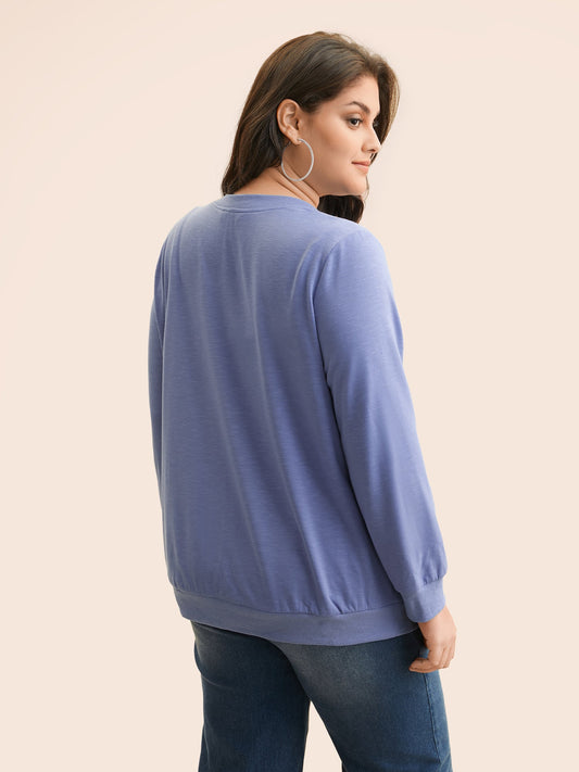 Plain Notched Crochet Lace Raglan Sleeve T-shirt