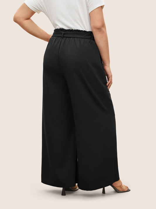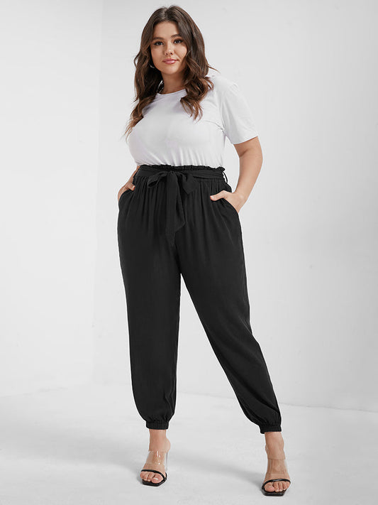 Plain Paperbag Waist Drawstring Hem Slant Pocket Pants