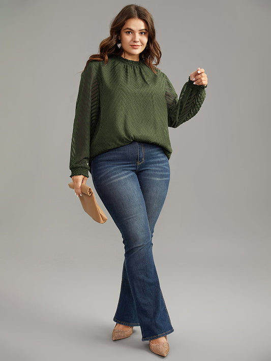 Plain Patchwork Mesh Shirred Frill Trim Blouse