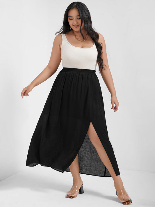 Plain Pleated Detail Ruffle Hem Notched Neck Tank Top