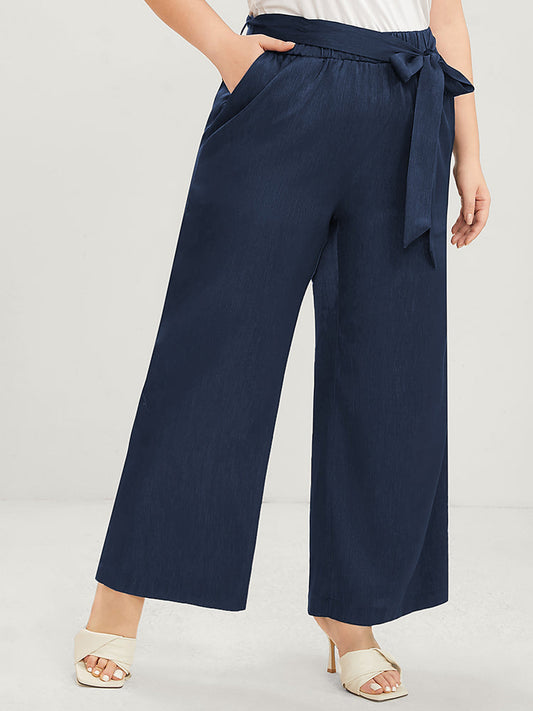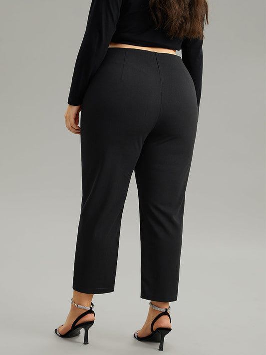 Plain Pocket Buckle Detail Elastic Waist Pants
