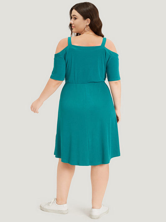 Plain Pocket Button Detail Cold Shoulder Cami Dress
