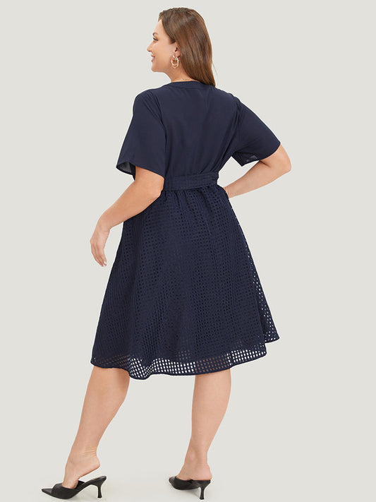 Plain Pocket Broderie Anglaise Ruffle Hem Knee Dress