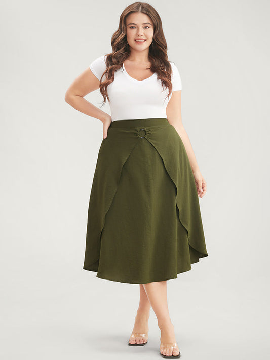 Plain Pocket Buckle Detail Asymmetrical Elastic Waist Skirt