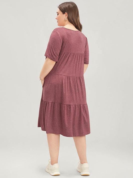 Plain Pocket V Neck Ruffle Tiered Knee Dress