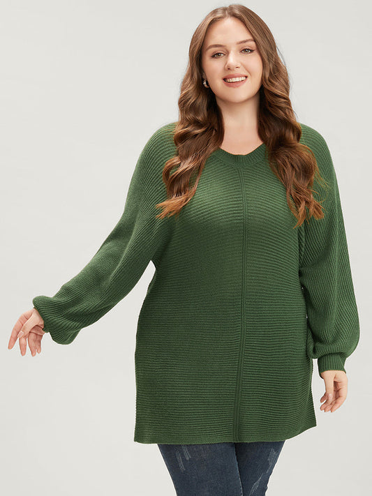Plain Pointelle Knit V Neck Dolman Sleeve Knit Top