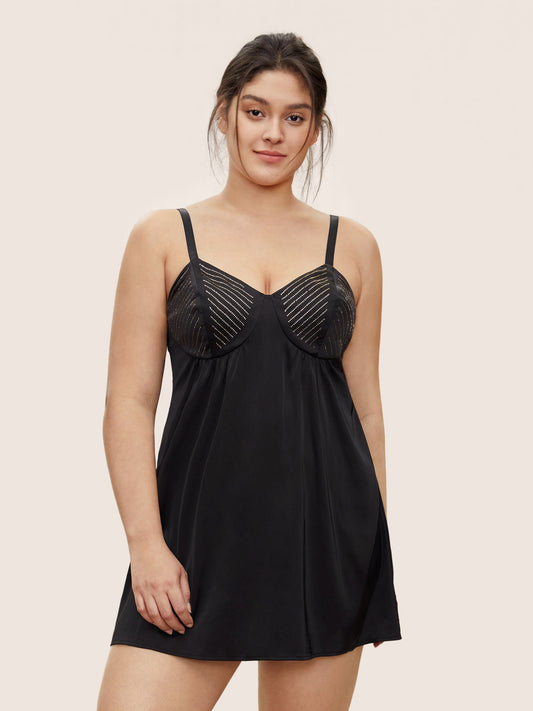 Plain Rhinestone Adjustable Straps Cami Sleep Dress
