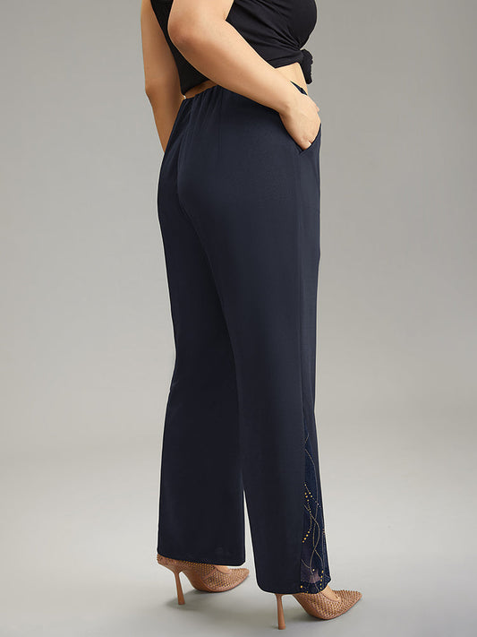 Plain Rhinestone Patchwork Mesh Bootcut Pants