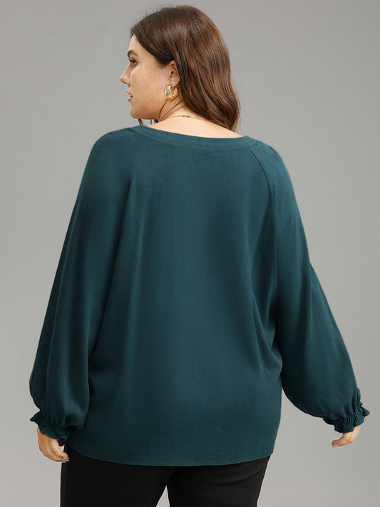 Plain Raglan Sleeve Plicated Detail Blouse