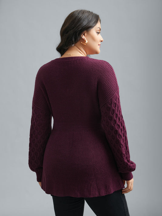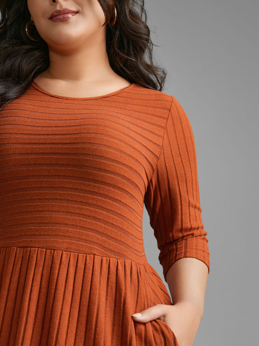 Plain Rib Knit V Neck Wrap Pleated Dress