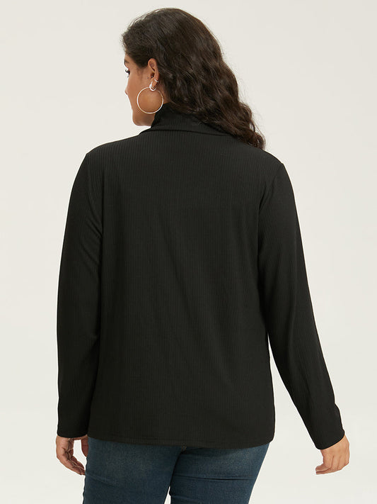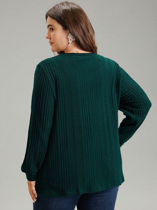 Plain Rib Knit Pearl Beaded Sweatshirt