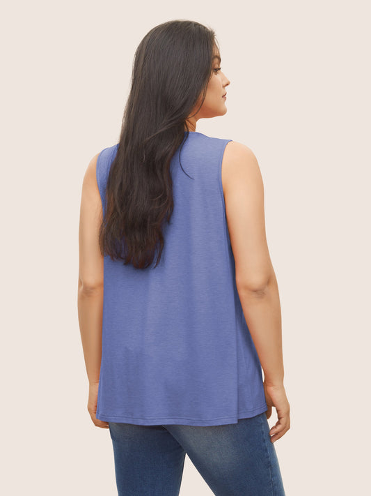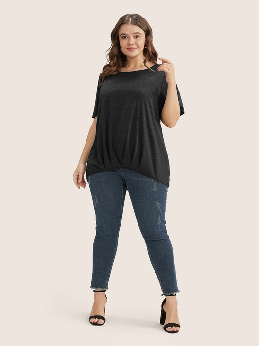 Plain Round Neck Pleated Asymmetrical Hem T-shirt
