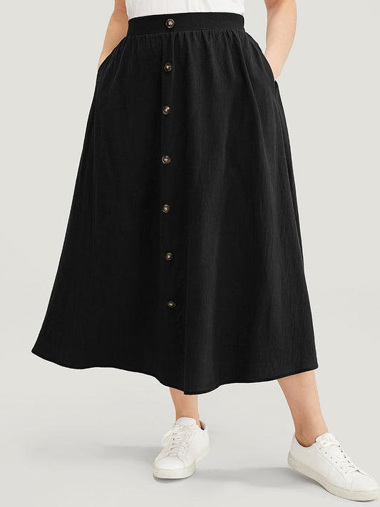 Plain Ruffle Hem Elastic Waist Button Detail Skirt