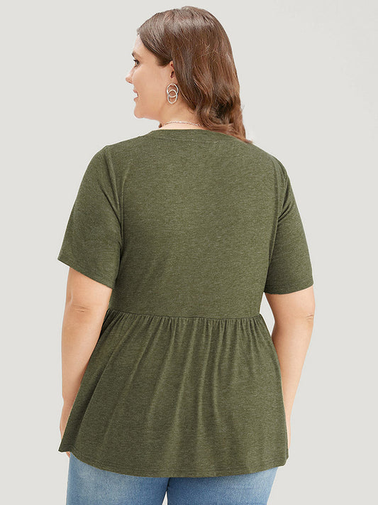 Plain Ruffle Gathered Buttton Up Tiered Sleeve Blouse