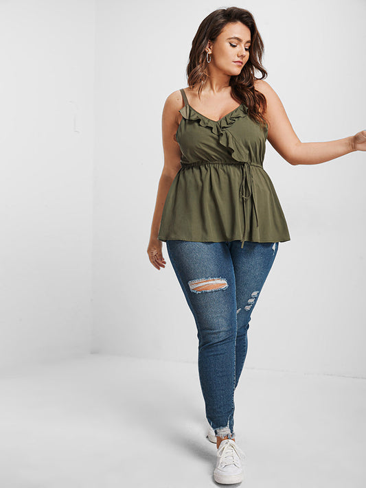 Plain Ruffle Hem Crisscross Rib Knit Tank Top